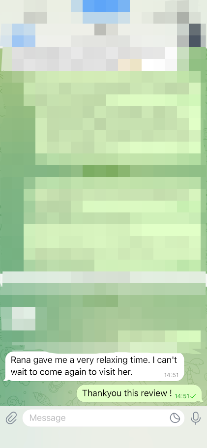 The Best Experience Ever – Rana Is Simply Amazing Rana is absolutely stunning inside and out. Her personality is warm, playful, and full of positive energy. Every moment with her melts away all the tension — my shoulders, back, head, legs… and yes, even my wallet felt lighter afterward ?But honestly, it was worth every penny. I’ll definitely be back soon ready to recharge my tank, body, and wallet again.If you want to experience real healing from a beautiful and kind woman, hurry up and go see Rana. You’ll walk out smiling, relaxed, and totally refreshed.