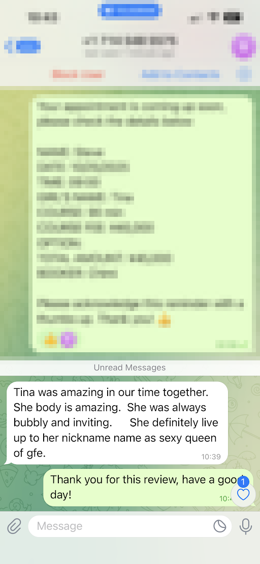 Tina Review: Came back to GFE after a while for a Double Dip because I’m a bit hentai and I love the format ? First up was Tina who I’ve wanted to meet for a while, and my oh my she has it going on ? What a cutie with an amazing, stacked body. She had me very excited from the first minute on! Her personality is so fun and charming. Really fun to talk to and joke with. Her play is phenomenal ? Quite the sexy beast with moves for days. I thoroughly enjoyed her service from beginning to end. I highly recommend and look forward to playing again ? Thank you for a wonderful time Tina-Chan! - Bobby