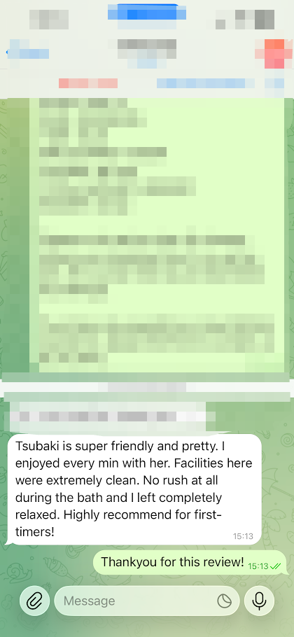 I had the wonderful pleasure of 120 min with Tsubaki-San. She is beautiful, caring, sweet and attentive. She makes all your desires a reality. Just careful to not get lost in her beautiful eyes because before you know it the time will be up. I will see her again and again.
