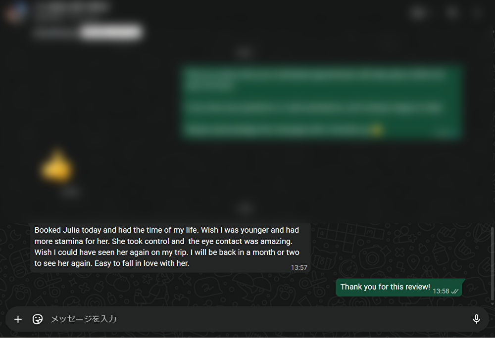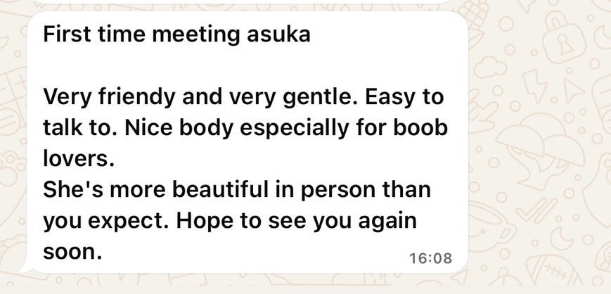 Momo was absolutely amazing. Her technique is really good and she clearly knows what she’s doing. She is warm and very easy to talk to. Her English is good, which made communication effortless, and her personality is lovely, friendly, relaxed, and genuine. The whole experience felt comfortable and enjoyable from start to finish. Honestly, a perfect experience. 10/10