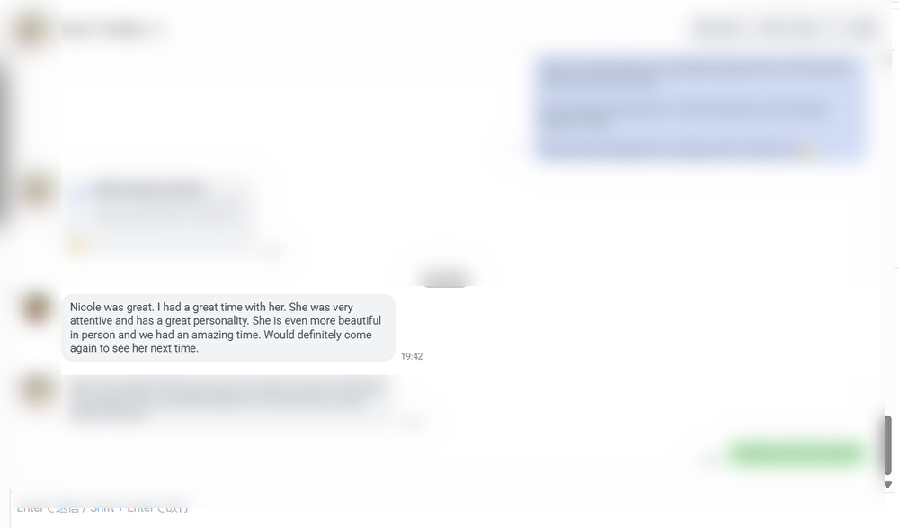 Nicole is amazing! She’s fun, playful, and instantly makes you feel comfortable. The experience was full of laughter, warmth, and connection — not rushed at all. She has a way of making everything feel natural and exciting. Easily one of the best experiences I’ve had. Highly recommend