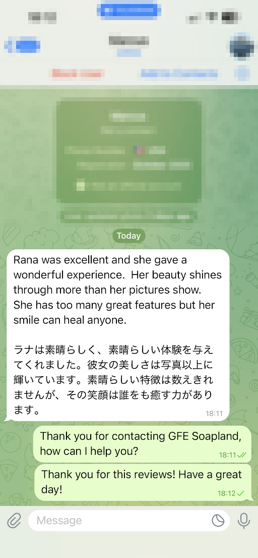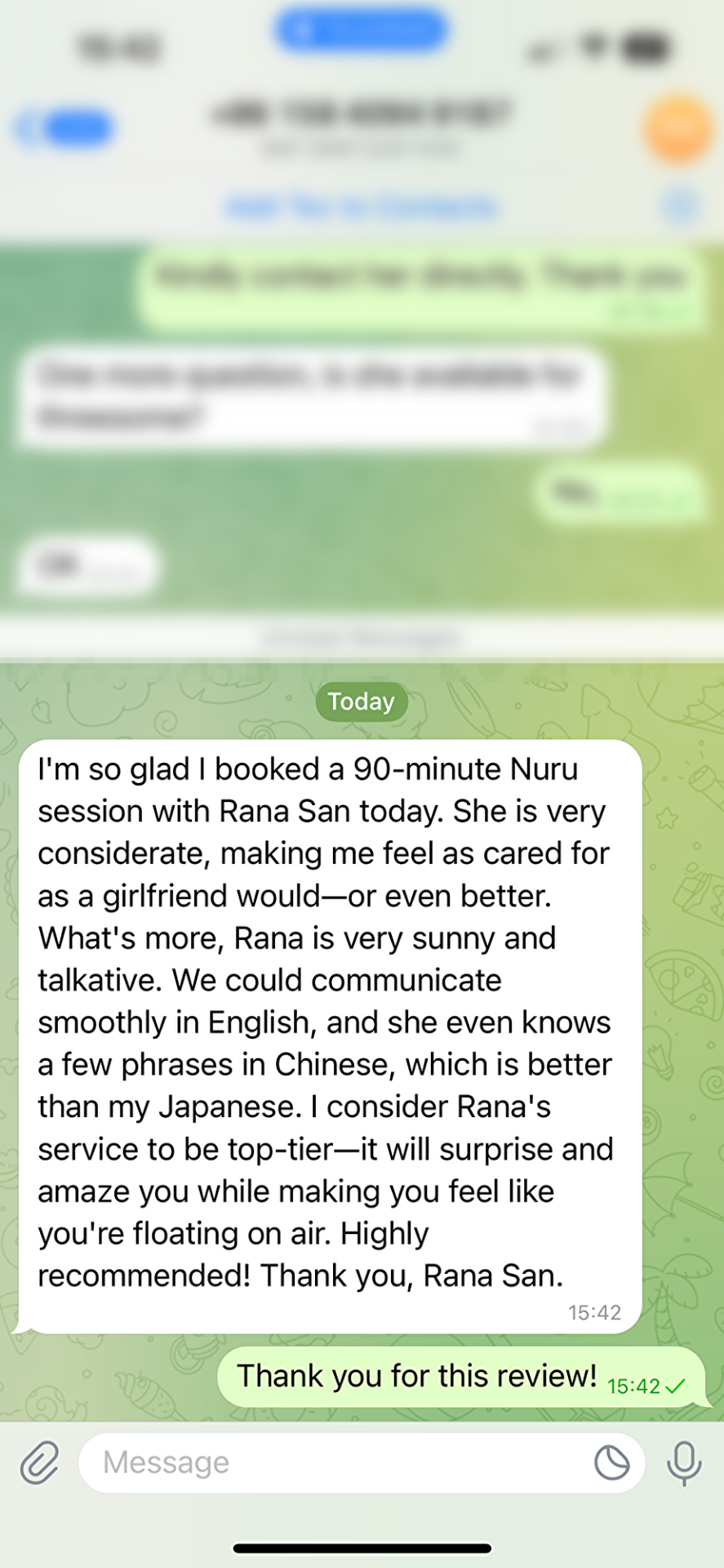 Rana is so cute and captivating. She made me feel so comfortable. Her communication was great, making me feel I was the centre of attention throughout our time. Her touch was so sensual and her nururu skills were second to none. I will definitely make the trip back when I'm next back in the country.
