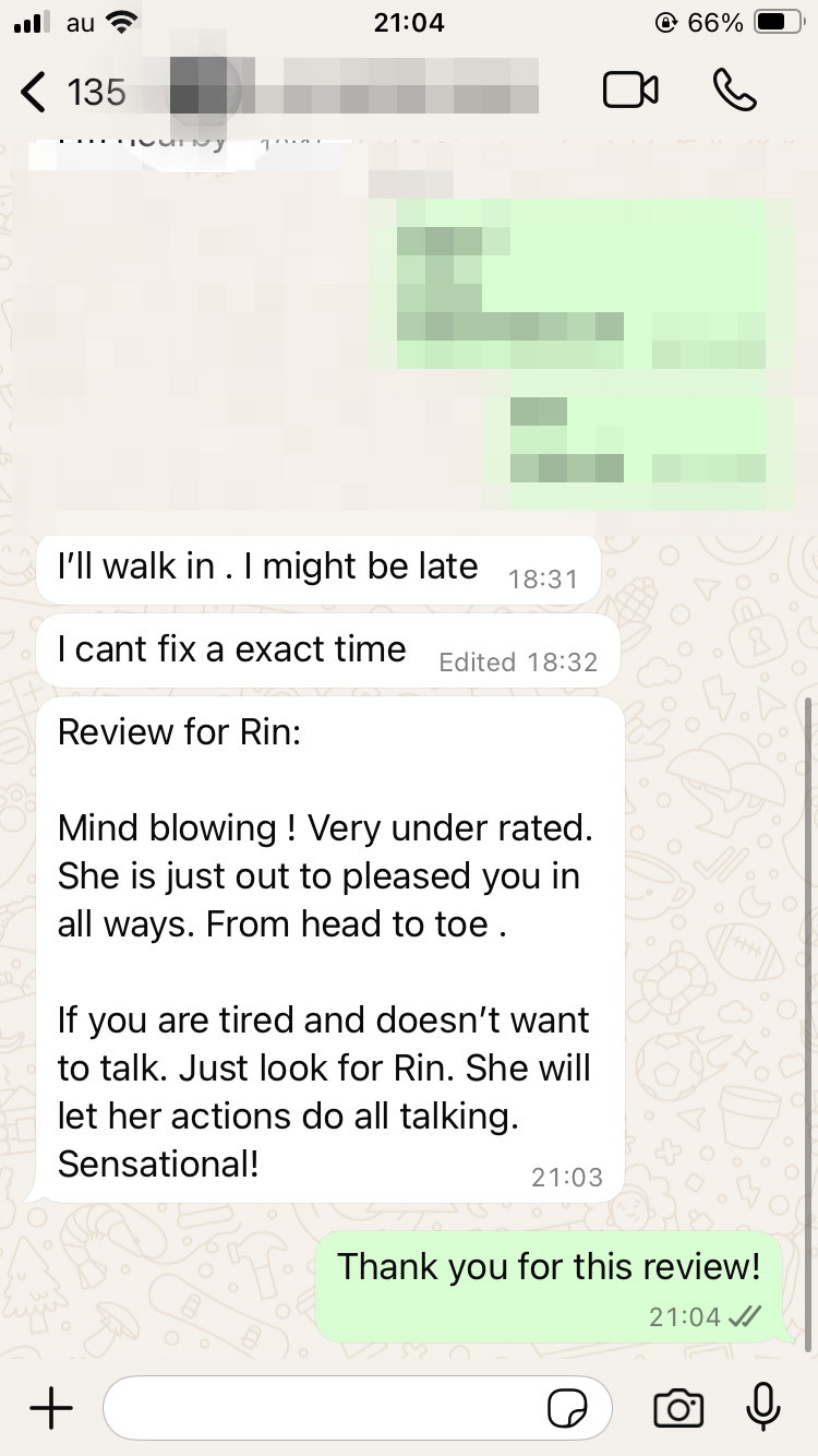 Had a great experience with Rin. She was really nice and sweet will definitely book with her again.