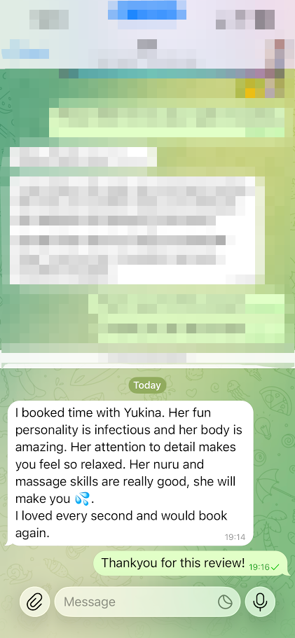 For my second visit to GFE, I decided to book a 180 appointment in advance with Yukina after reading over her profile, posts, and reviews. I contacted her through DM and she was very friendly and accommodating with my schedule. She was just as friendly in person, as well as affectionate. She is petite, and cute both in appearance and personality. She's very attentive and an absolute pleasure to spend time with. My Japanese was limited, but we had fun communicating through Google Translate once we were tired out (perhaps more me than her). She is fantastic, highly recommended, and I hope to see her again on my next visit. I feel like I could kiss her forever.