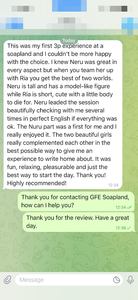 I have met Ria chan many times and she never disappoints. The reasons I keep coming back to her are: She is cute as fuck. She has a beautiful little body. And every time I see her she makes me feel amazing. She really is something special. I hope I can see here many more times in the future.