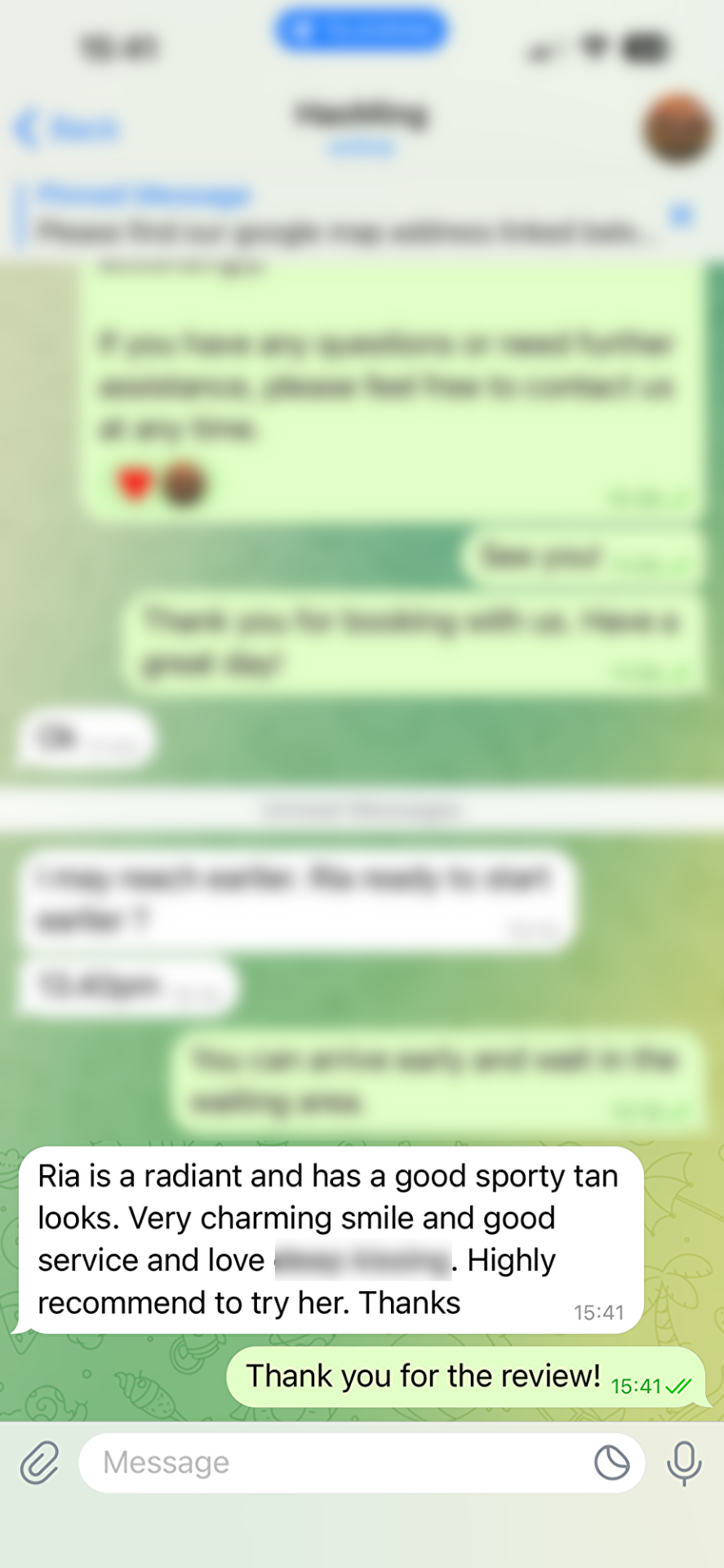 Spending time with Ria was truly a wonderful experience. She has an amazing personality that instantly makes you feel comfortable and appreciated. Every moment with her was full of laughter, warmth, and genuine connection. Her kindness, intelligence, and positive energy made our time together unforgettable. Ria has a way of turning simple moments into beautiful memories, and I’m really grateful for the time we shared. She’s truly a special person who leaves a lasting impression on whoever she meets.