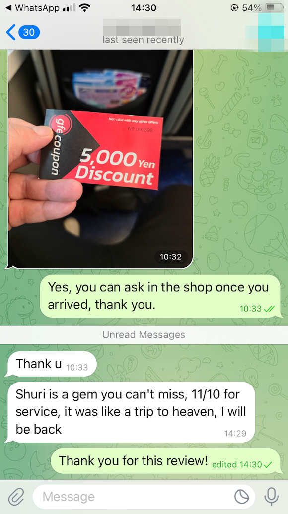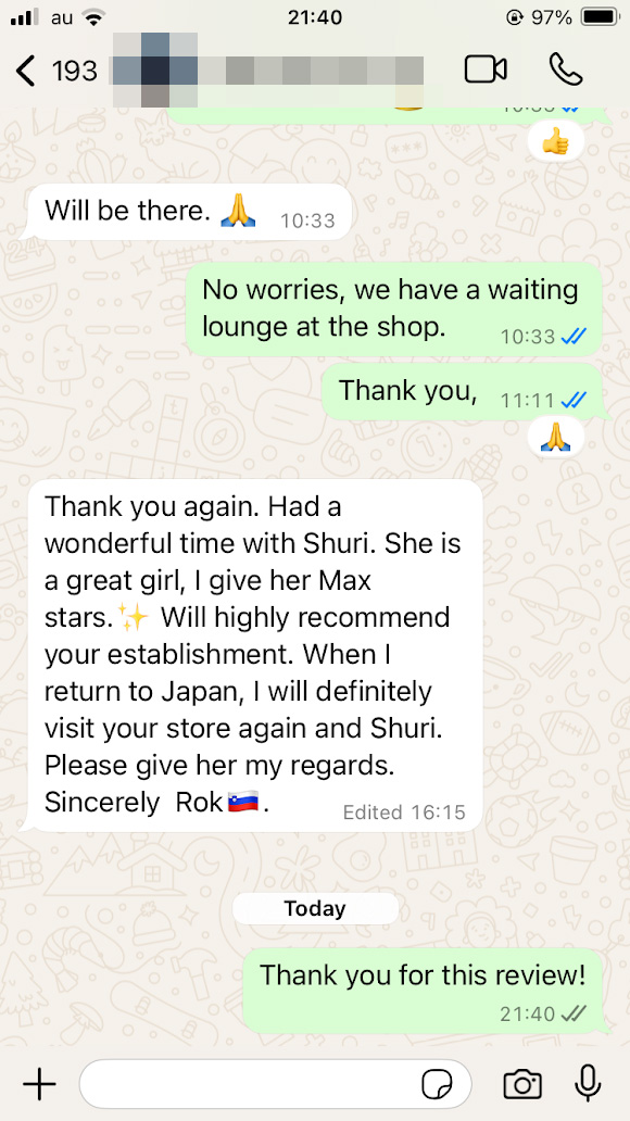 My first time to GFE SOAPLAND I walked in and chose Shuri. She gave me an amazing GFE experience and made me want to go back. Unfortunately I couldn't find another time where our schedules aligned during my trip but I hope to see her again when I return to Japan.